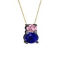 Pembe kuvars, lab safir ve pırlanta 925 ayar siyah rodyum kaplama gümüş kolye (0.036 karat, 40 cm altın rolo zincir)
