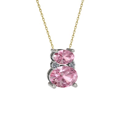 Pembe kuvars ve pırlanta 18 ayar beyaz altın kolye (0.036 karat, 40 cm altın rolo zincir)