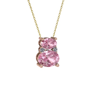 Pembe kuvars ve pırlanta 8 ayar rose altın kolye (0.036 karat, 40 cm altın rolo zincir)