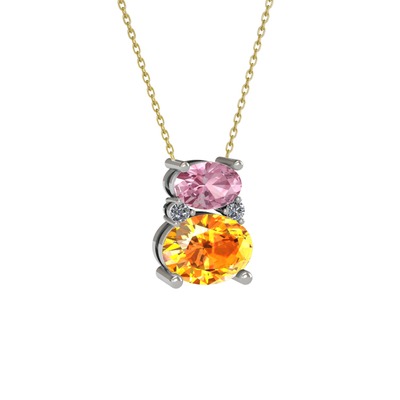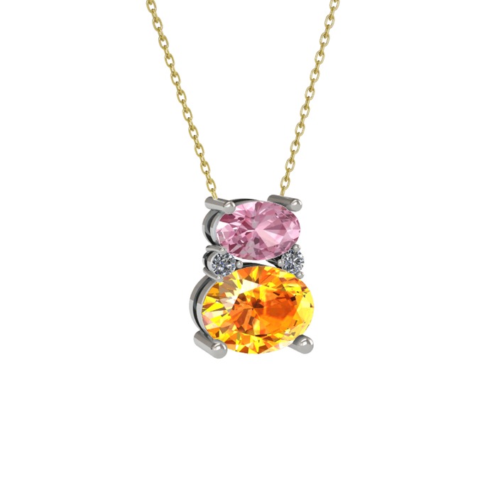 Pembe kuvars, sitrin ve pırlanta 925 ayar gümüş kolye (0.036 karat, 40 cm altın rolo zincir)
