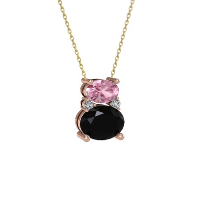 Pembe kuvars, siyah zirkon ve swarovski 18 ayar rose altın kolye (40 cm gümüş rolo zincir)