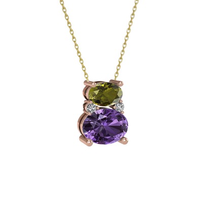 Peridot, ametist ve swarovski 18 ayar rose altın kolye (40 cm altın rolo zincir)