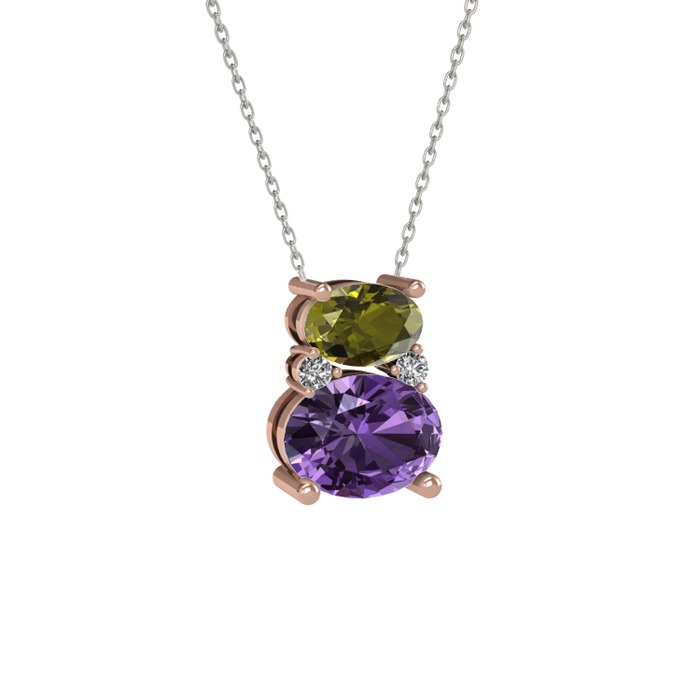 Peridot, ametist ve swarovski 8 ayar rose altın kolye (40 cm beyaz altın rolo zincir)