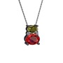 Peridot, garnet ve pırlanta 925 ayar siyah rodyum kaplama gümüş kolye (0.036 karat, 40 cm gümüş rolo zincir)