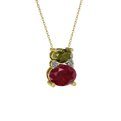 Peridot, kök yakut ve pırlanta 14 ayar altın kolye (0.036 karat, 40 cm altın rolo zincir)