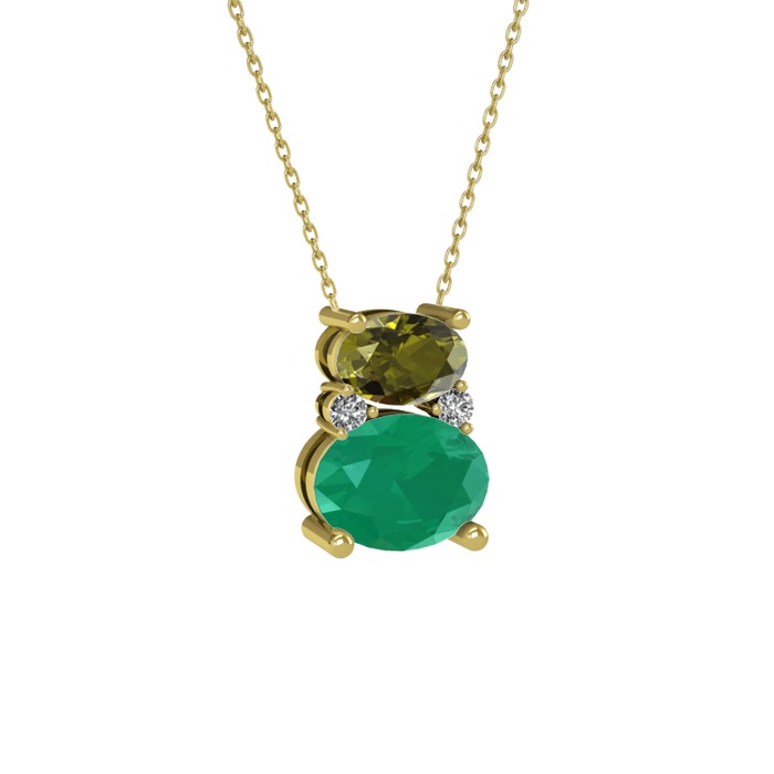 Peridot, kök zümrüt ve swarovski 8 ayar altın kolye (40 cm gümüş rolo zincir)