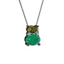 Peridot, kök zümrüt ve swarovski 925 ayar siyah rodyum kaplama gümüş kolye (40 cm gümüş rolo zincir)
