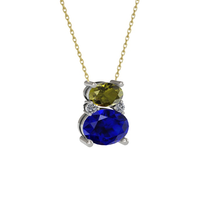 Peridot, lab safir ve pırlanta 925 ayar gümüş kolye (0.036 karat, 40 cm altın rolo zincir)