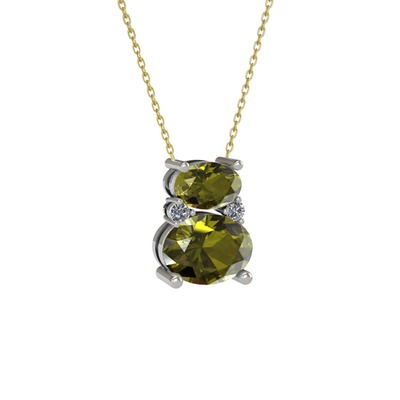 Peridot ve pırlanta 18 ayar beyaz altın kolye (0.036 karat, 40 cm gümüş rolo zincir)