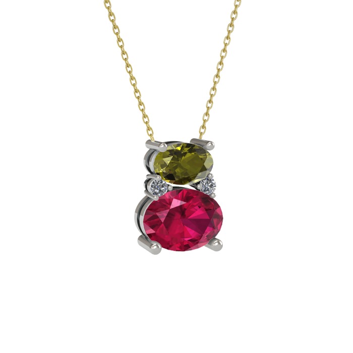 Peridot, rodolit garnet ve pırlanta 14 ayar beyaz altın kolye (0.036 karat, 40 cm gümüş rolo zincir)