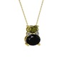 Peridot, siyah zirkon ve pırlanta 925 ayar altın kaplama gümüş kolye (0.036 karat, 40 cm altın rolo zincir)