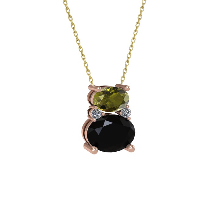 Peridot, siyah zirkon ve pırlanta 925 ayar rose altın kaplama gümüş kolye (0.036 karat, 40 cm altın rolo zincir)