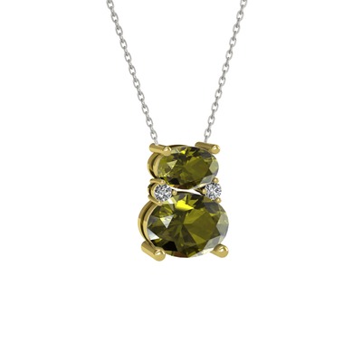Peridot ve swarovski 14 ayar altın kolye (40 cm beyaz altın rolo zincir)