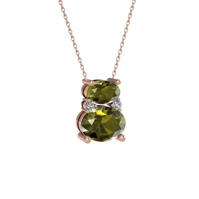 Peridot ve swarovski 18 ayar rose altın kolye (40 cm gümüş rolo zincir)