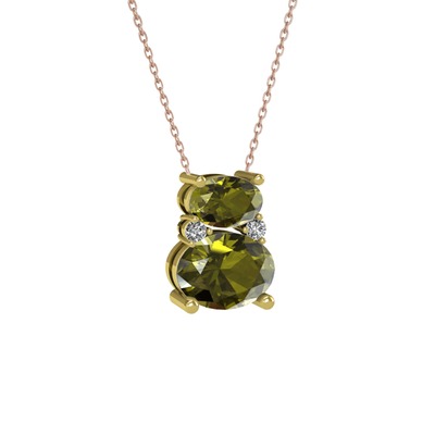Peridot ve swarovski 925 ayar altın kaplama gümüş kolye (40 cm rose altın rolo zincir)