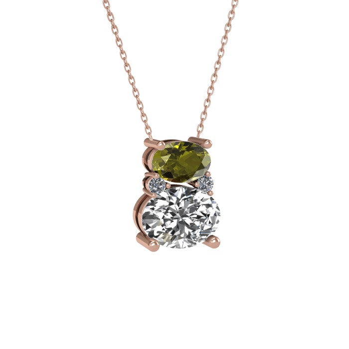 Peridot, swarovski ve pırlanta 14 ayar rose altın kolye (0.036 karat, 40 cm gümüş rolo zincir)