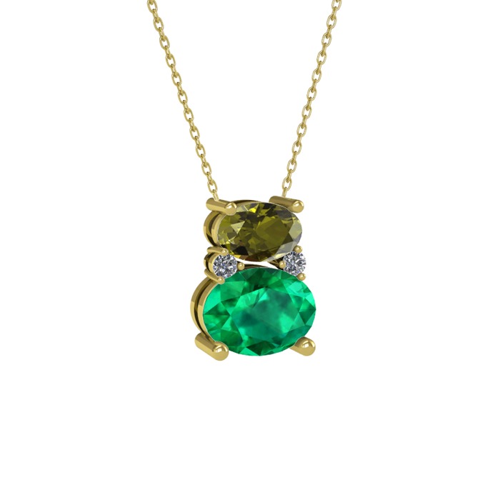 Peridot, yeşil kuvars ve pırlanta 18 ayar altın kolye (0.036 karat, 40 cm altın rolo zincir)