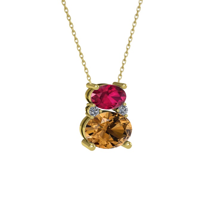 Rodolit garnet, dumanlı kuvars ve pırlanta 925 ayar altın kaplama gümüş kolye (0.036 karat, 40 cm gümüş rolo zincir)