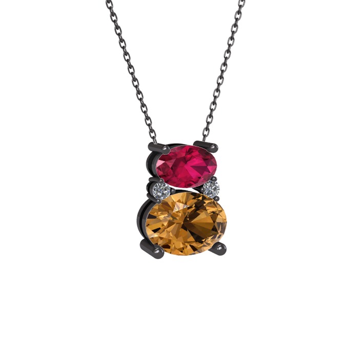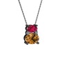 Rodolit garnet, dumanlı kuvars ve pırlanta 925 ayar siyah rodyum kaplama gümüş kolye (0.036 karat, 40 cm gümüş rolo zincir)