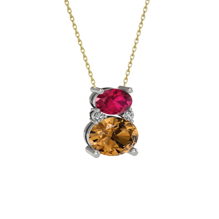 Rodolit garnet, dumanlı kuvars ve swarovski 14 ayar beyaz altın kolye (40 cm altın rolo zincir)