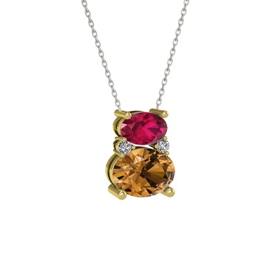 Rodolit garnet, dumanlı kuvars ve swarovski 8 ayar altın kolye (40 cm beyaz altın rolo zincir)
