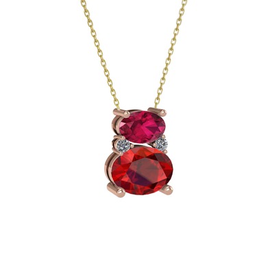 Rodolit garnet, garnet ve pırlanta 8 ayar rose altın kolye (0.036 karat, 40 cm altın rolo zincir)