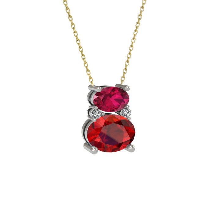 Rodolit garnet, garnet ve swarovski 18 ayar beyaz altın kolye (40 cm altın rolo zincir)