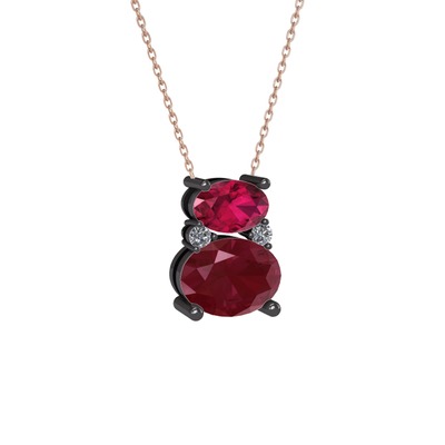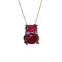 Rodolit garnet, kök yakut ve pırlanta 925 ayar siyah rodyum kaplama gümüş kolye (0.036 karat, 40 cm gümüş rolo zincir)