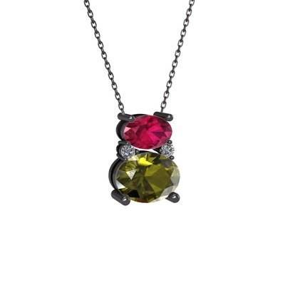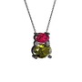 Rodolit garnet, peridot ve pırlanta 925 ayar siyah rodyum kaplama gümüş kolye (0.036 karat, 40 cm gümüş rolo zincir)