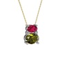 Rodolit garnet, peridot ve swarovski 18 ayar beyaz altın kolye (40 cm altın rolo zincir)