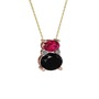 Rodolit garnet, siyah zirkon ve pırlanta 8 ayar rose altın kolye (0.036 karat, 40 cm altın rolo zincir)
