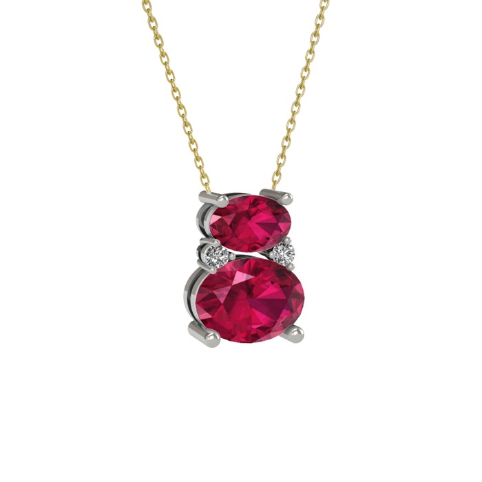 Rodolit garnet ve swarovski 18 ayar beyaz altın kolye (40 cm altın rolo zincir)