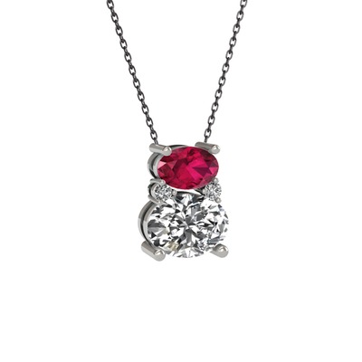Rodolit garnet ve swarovski 18 ayar beyaz altın kolye (40 cm gümüş rolo zincir)