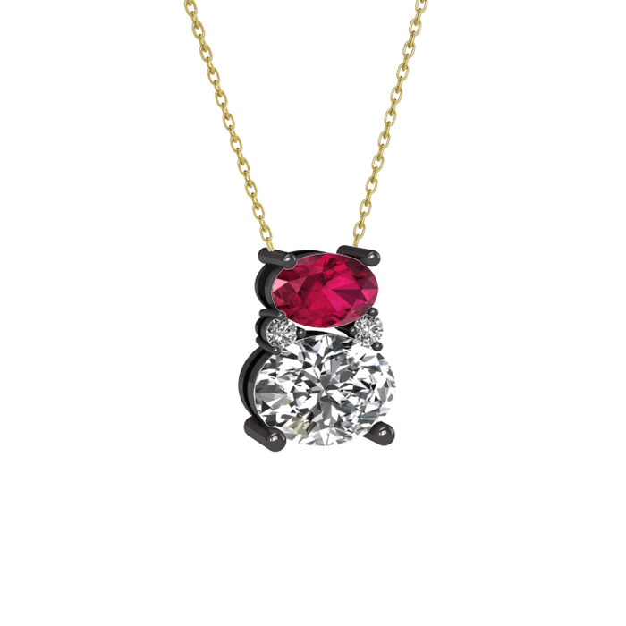 Rodolit garnet ve swarovski 925 ayar siyah rodyum kaplama gümüş kolye (40 cm altın rolo zincir)