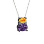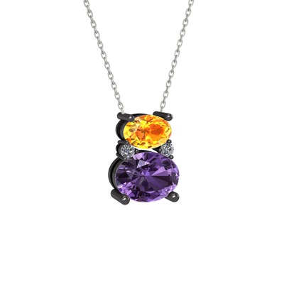 Sitrin, ametist ve pırlanta 925 ayar siyah rodyum kaplama gümüş kolye (0.036 karat, 40 cm beyaz altın rolo zincir)