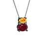 Sitrin, kök yakut ve pırlanta 925 ayar siyah rodyum kaplama gümüş kolye (0.036 karat, 40 cm gümüş rolo zincir)