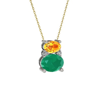 Sitrin, kök zümrüt ve swarovski 14 ayar beyaz altın kolye (40 cm altın rolo zincir)