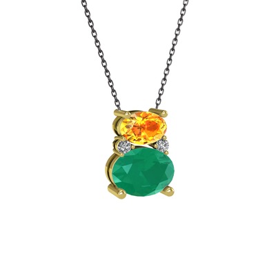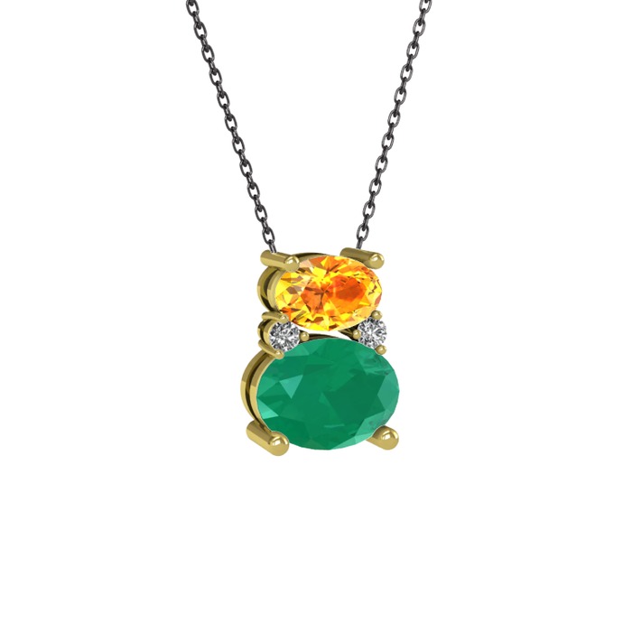 Sitrin, kök zümrüt ve swarovski 925 ayar altın kaplama gümüş kolye (40 cm gümüş rolo zincir)
