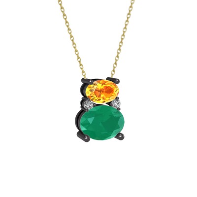 Sitrin, kök zümrüt ve swarovski 925 ayar siyah rodyum kaplama gümüş kolye (40 cm altın rolo zincir)