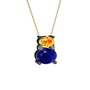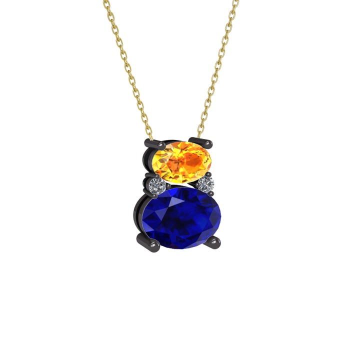 Sitrin, lab safir ve pırlanta 925 ayar siyah rodyum kaplama gümüş kolye (0.036 karat, 40 cm gümüş rolo zincir)