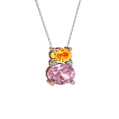 Sitrin, pembe kuvars ve swarovski 8 ayar rose altın kolye (40 cm beyaz altın rolo zincir)
