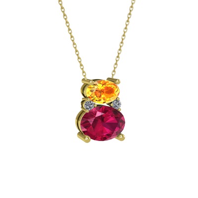 Sitrin, rodolit garnet ve pırlanta 925 ayar altın kaplama gümüş kolye (0.036 karat, 40 cm gümüş rolo zincir)