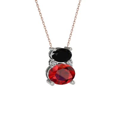 Siyah zirkon, garnet ve swarovski 18 ayar beyaz altın kolye (40 cm gümüş rolo zincir)