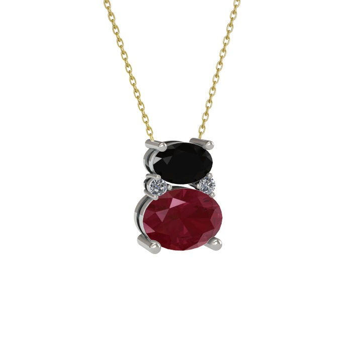 Siyah zirkon, kök yakut ve pırlanta 8 ayar beyaz altın kolye (0.036 karat, 40 cm altın rolo zincir)