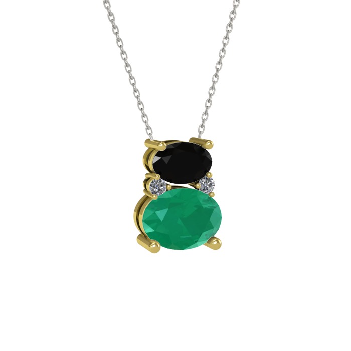 Siyah zirkon, kök zümrüt ve pırlanta 8 ayar altın kolye (0.036 karat, 40 cm gümüş rolo zincir)