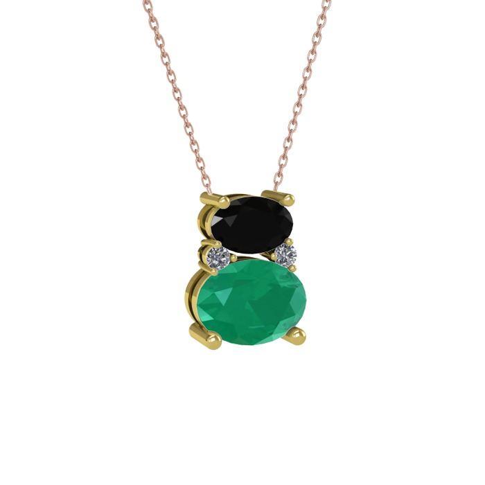 Siyah zirkon, kök zümrüt ve pırlanta 925 ayar altın kaplama gümüş kolye (0.036 karat, 40 cm rose altın rolo zincir)