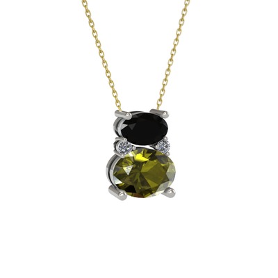 Siyah zirkon, peridot ve pırlanta 8 ayar beyaz altın kolye (0.036 karat, 40 cm altın rolo zincir)