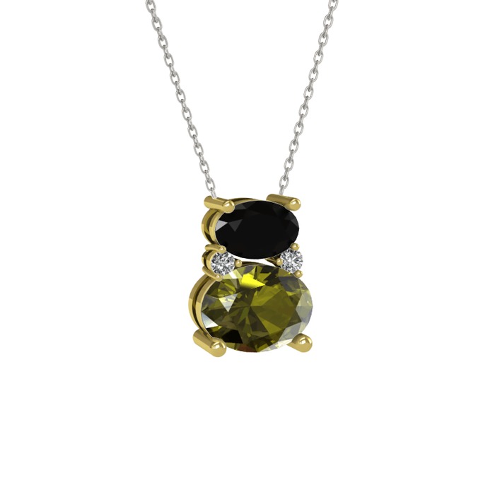 Siyah zirkon, peridot ve swarovski 14 ayar altın kolye (40 cm beyaz altın rolo zincir)
