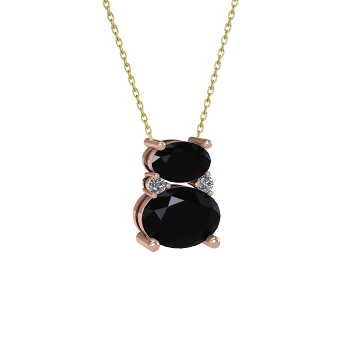 Siyah zirkon ve pırlanta 18 ayar rose altın kolye (0.036 karat, 40 cm gümüş rolo zincir)