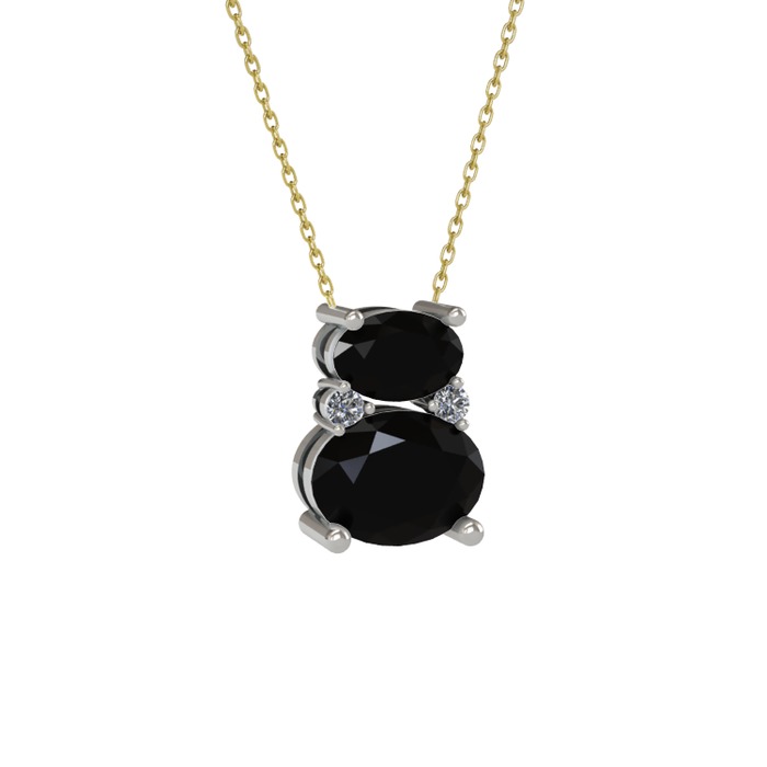 Siyah zirkon ve pırlanta 925 ayar gümüş kolye (0.036 karat, 40 cm altın rolo zincir)